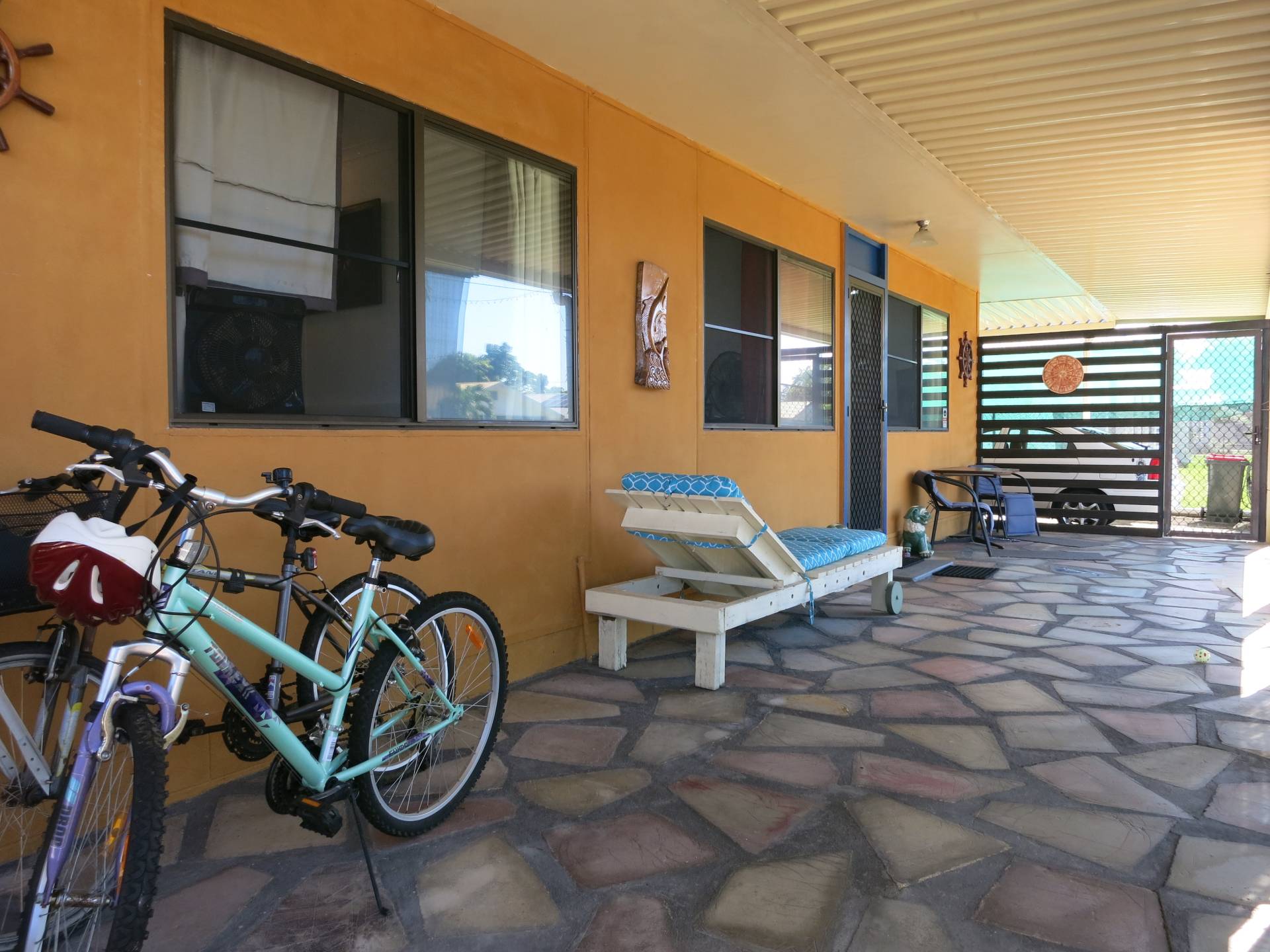 Located only five minutes walk from the beach this two bedroom home is neat, tidy and fully screened. The main bedroom is generous with built in cupboards and air conditioning. There are two living    areas-the open plan kitchen/lounge/dining area and a rear enclosed verandah/sitting room. Verandahs at the front and back provide another place to sit, relax and enjoy the sea breeze. The yard is fully fenced, contains tropical gardens, fruit trees, a lockable garage and a carport with easy car access into the backyard. This home comes with a furniture option and would make the perfect weekender or holiday home.