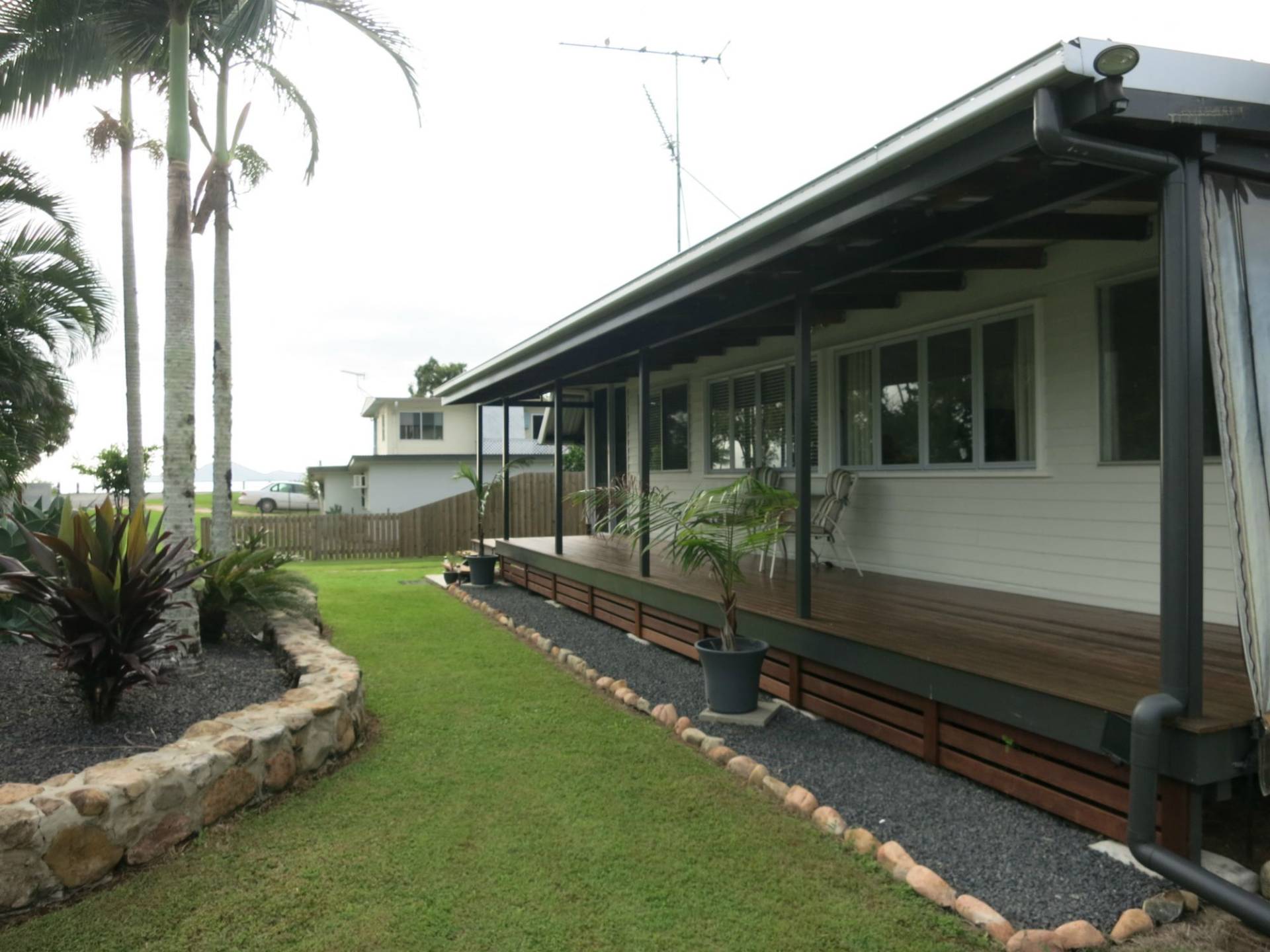 leisurely afternoon stroll or a spot of fishing as the sun sets. Sit on the front deck and enjoy sea views. A two bay shed has room for the boat and a high clearance carport is suitable for a caravan.