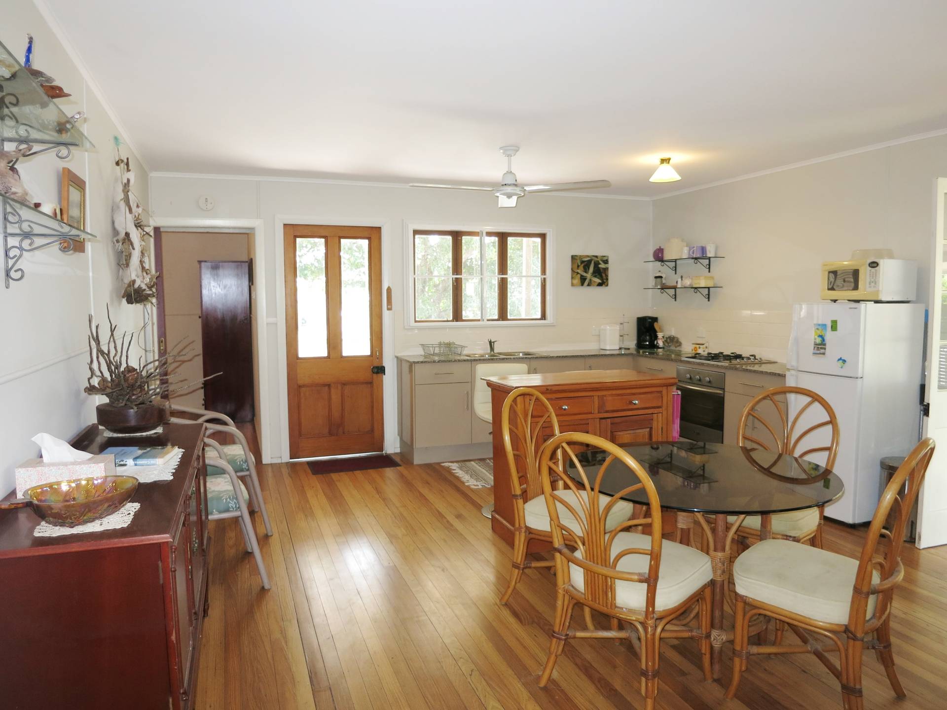 This beachside home is very neat & tidy and is just one street from the beach front. The home features three spacious bedrooms, 3 decks and a solar power system. A large open plan living area with polished timber floors flows out onto a under cover deck at the rear with glimpses of the sea. The front patio and side deck allow you to enjoy undercover outdoor areas throughout the day. This property is well maintained with a wide driveway and good  access to the backyard. Ideally located - within easy walking  distance to shops, café and the supermarket. Ideal weekender or holiday rental.