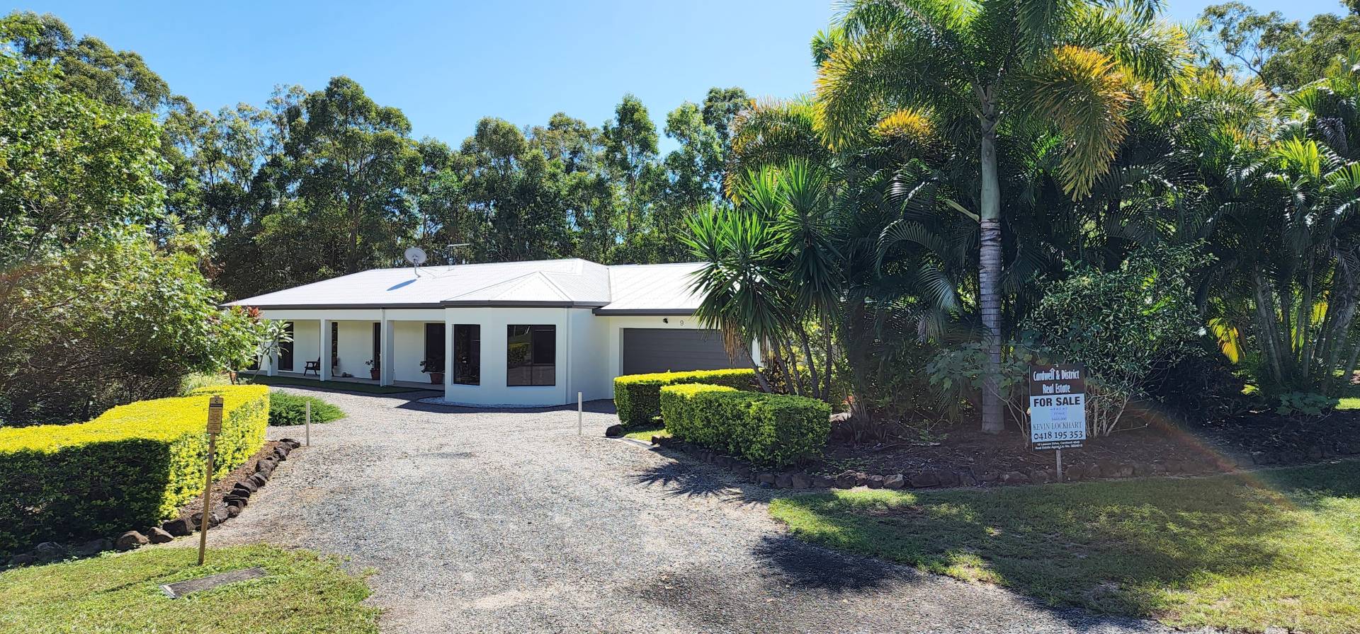 This magnificent spacious rural residence with four bedrooms and a media room has been designed and built for tropical living and comfort. This home is       surrounded by beautiful lush tropical gardens and features outdoor living spaces perfect for entertaining, enjoying balmy evenings and morning cuppas. The master suite has a walk in robe and ensuite and is perfectly positioned, opening out onto a verandah and overlooking gardens. The modern kitchen boasts stainless steel appliances, a large walk in pantry and loads of storage. Enjoy relaxed and comfortable living in this lifestyle home where you will feel like you are perpetually on holidays. Ideally located around 5 minutes north of Cardwell, Hinchinbrook Harbour Marina and boat ramps.