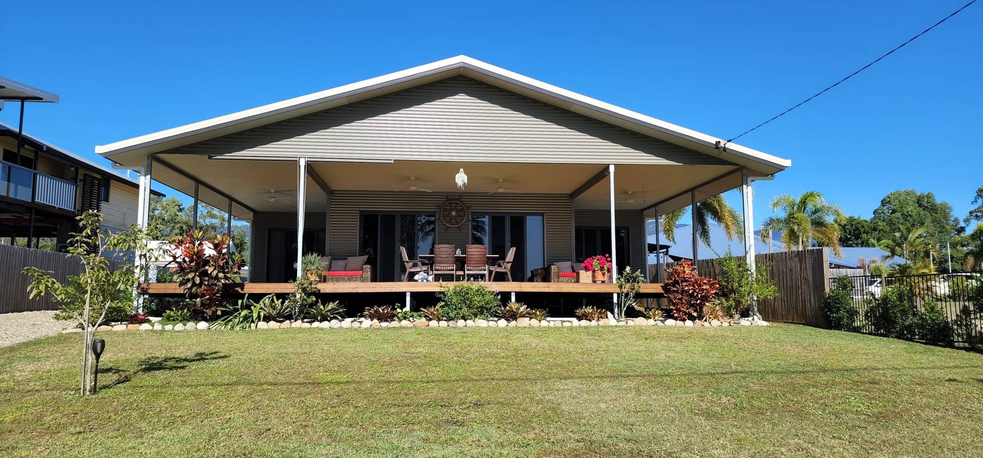 Enjoy spectacular sea & island views from the deck of this as new beach house  on Victoria Street. This stunning three bedroom home features a large entertainer’s deck to enjoy the magnificent view all day long. The master bedroom features an ensuite and walk in robe. Fully air conditioned this home is light filled and a pleasure to be in with seamless indoor outdoor living areas. Take a walk to shops, cafés or the beachfront bar & bistro from this very convenient location. This property is fenced on all sides with good access to a double garage & carport. The home provides fresh, modern, comfortable living and is ready for you to move in and enjoy what Cardwell by the Sea has to offer. The views will amaze you! Feel like you are on holidays every day! Be quick as this is a very unique property in a fantastic beachside location.