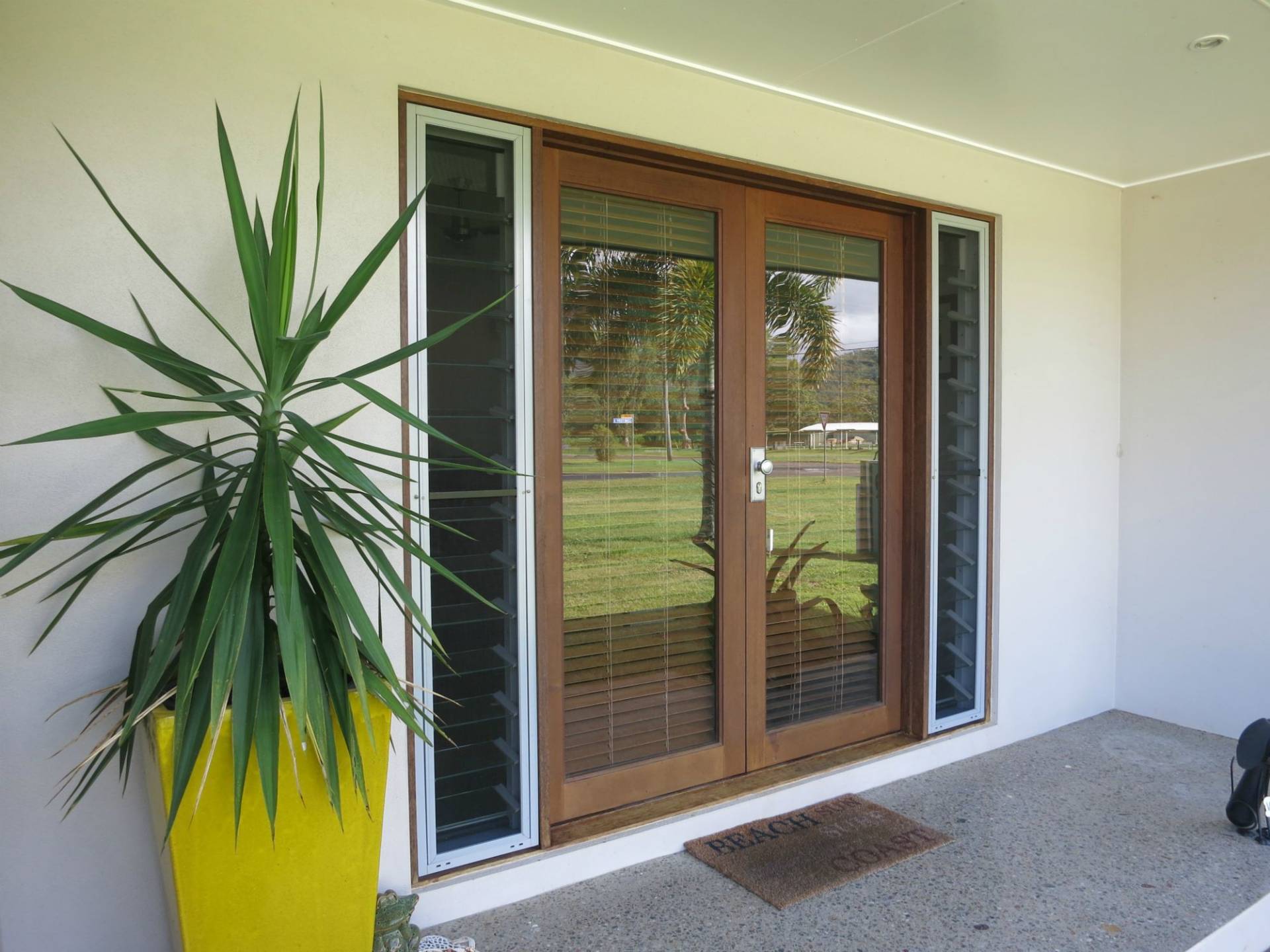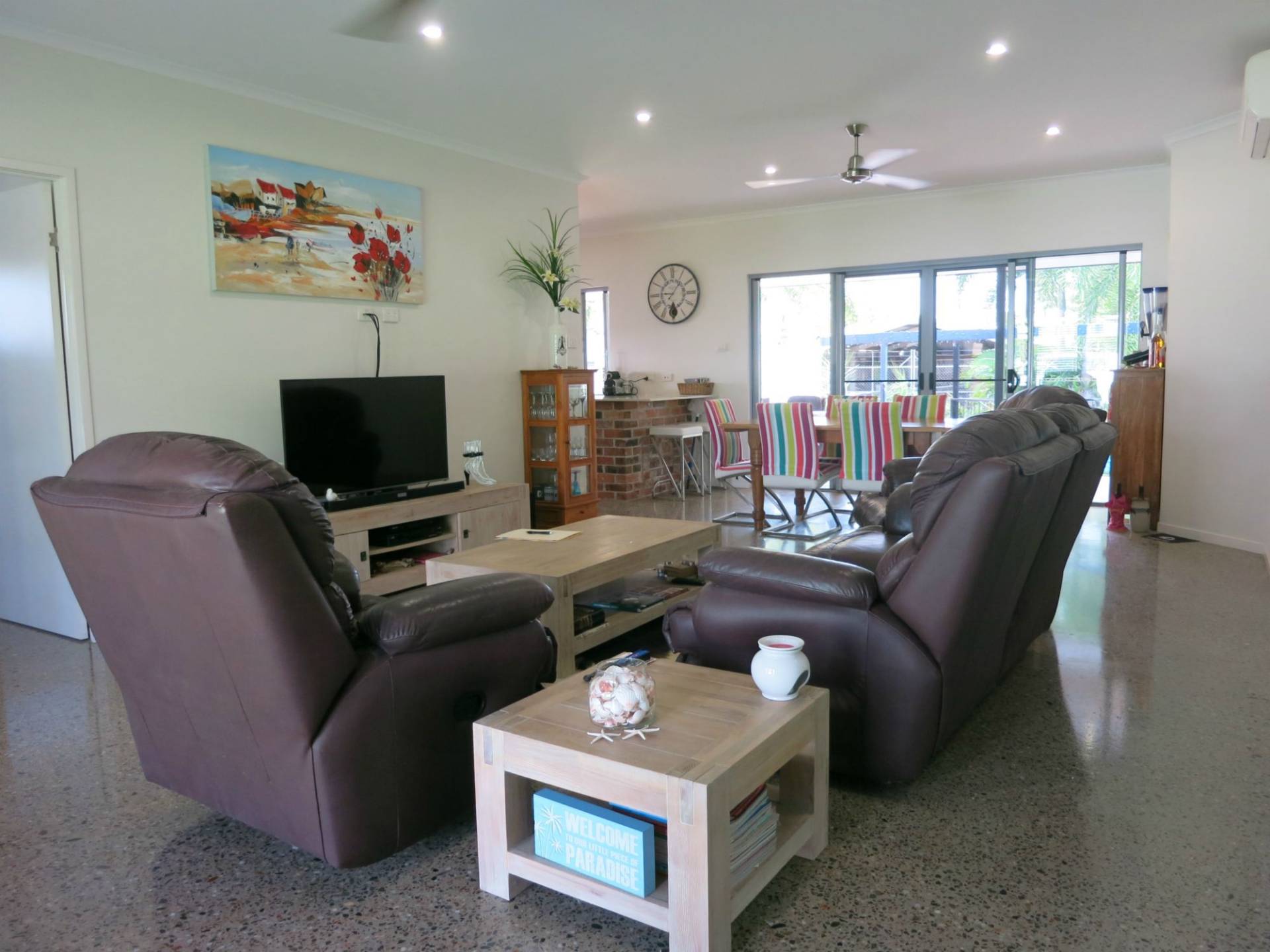 This three bedroom, two bathroom, fully air conditioned family home is outstanding in every aspect with a focus on entertainment and relaxation. An open plan living area opens out onto a spacious rear veranda and a sparkling in-ground pool in a private tropical setting. All floor areas are polished concrete inlaid with river stones providing a lovely, cool maintenance free surface. The modern functional kitchen with stainless steel appliances has a servery to the rear veranda. This impressive family home is adjacent to a sports reserve and boasts fantastic mountain views. The property is fenced, with a wide driveway and easy access to the back yard and large shed. Ideally located - within easy walking distance to shops, cafes and the beachfront. It's all been done - all you have to do, is move in and relax. An inspection won't disappoint.