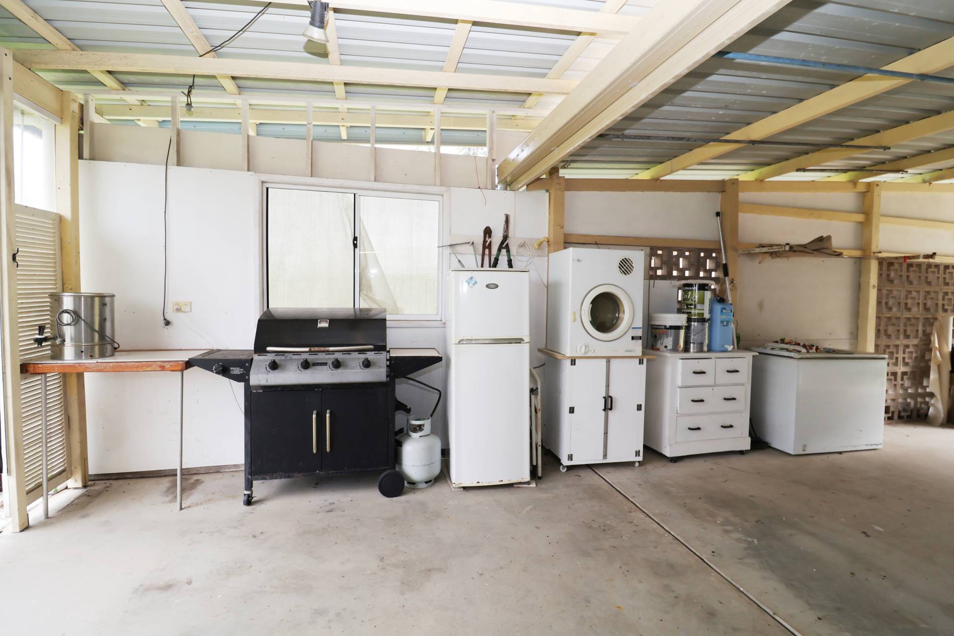2 bedroom + sleepout beach house close to the beach is fully furnised and has a boat shed